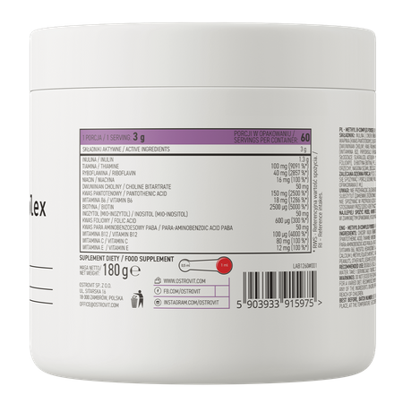 Kattava jauhemainen B-vitamiinikompleksi, joka sisältää 14 arvokasta ainesosaa – kaikki 8 B-vitamiinia denaturoiduissa muodoissa, täydennettynä koliinilla, inositolin, PABA:n sekä C- ja E-vitamiinien yhdistelmällä. OstroVit Pharma Methyl B-kompleksilla on persikan ja appelsiinin maku, ja se sopii erityisesti niille, jotka pitävät jauheesta enemmän kuin tableteista. Saatavilla Omegafit.ee-verkkokaupasta Pärnussa, toimitus 1–2 päivän kuluessa koko Virossa.