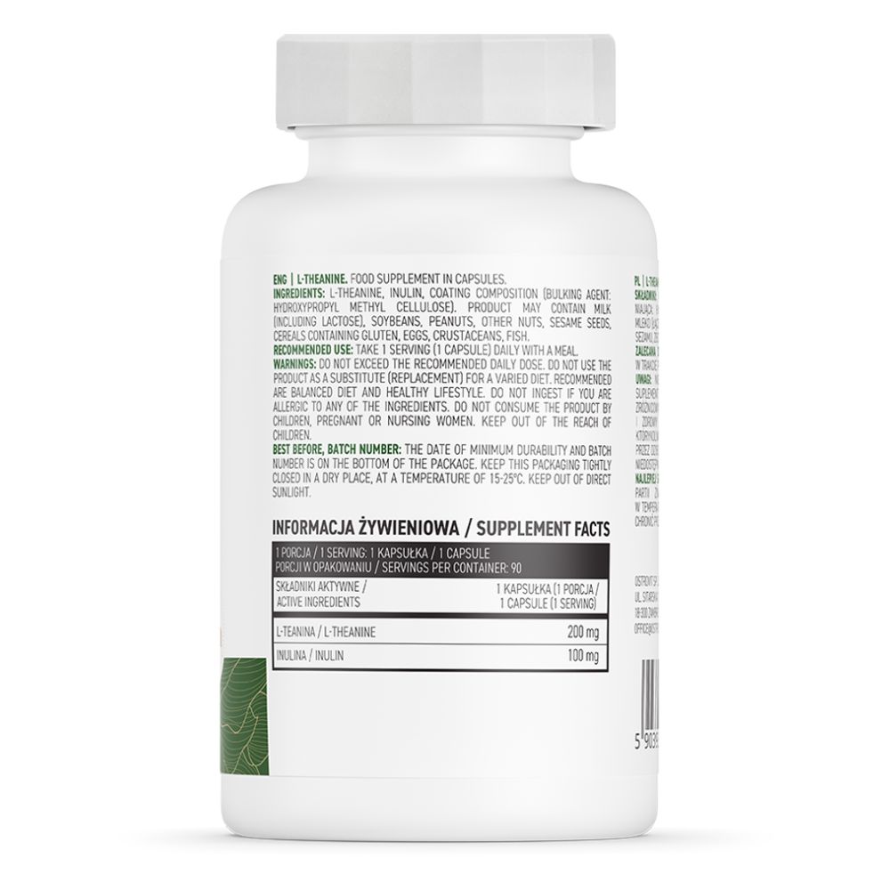 OstroVit L-Theanine VEGE 90 kapselia on vegaaninen ravintolisä kaikille, jotka elävät jatkuvan stressin alaisena, tuntevat ahdistusta tai kamppailevat oppimisen ja keskittymisen kanssa. L-teaniinin ja inuliinin yhdistelmän ansiosta ravintolisä säätelee myös ruoansulatusjärjestelmän toimintaa.