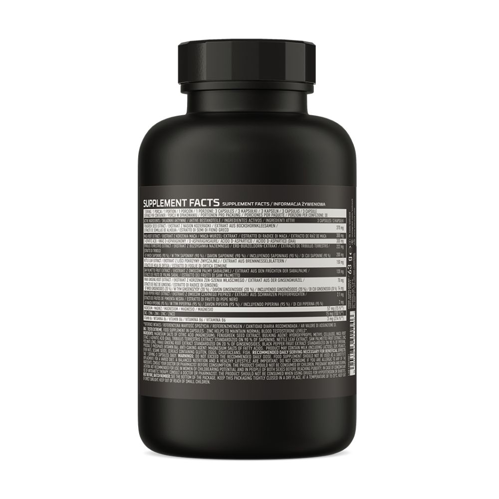 - 11 eri vaikuttavan ainesosan lähde – yksi annos ravintolisää antaa elimistölle 370 mg fenugreek-siemenuutetta, 300 mg maca-juureuutetta, 300 mg D-aspartiinihappoa sekä 222 mg ginseng-uutetta ja 150 mg nokjenlehtiuutetta. Lisäksi valmiste sisältää 120 mg saw palmetto -uutetta, 70 mg ginseng-juureuutetta ja 2,1 mg mustapippurin hedelmäuutetta sekä 57 mg magnesiumia, 15 mg sinkkiä ja 3 mg B6-vitamiinia.