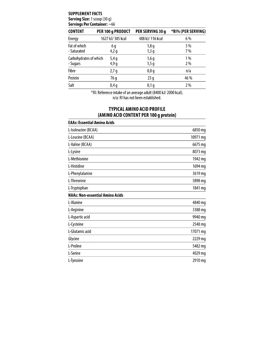 Luonnostaan rikas BCAA-aminohappojen ja glutamiinin osalta, Shadowhey imeytyy nopeasti ja on ihanteellinen käytettäväksi treenin jälkeen tai kätevänä proteiininlähteenä aterioiden välillä pitkin päivää.